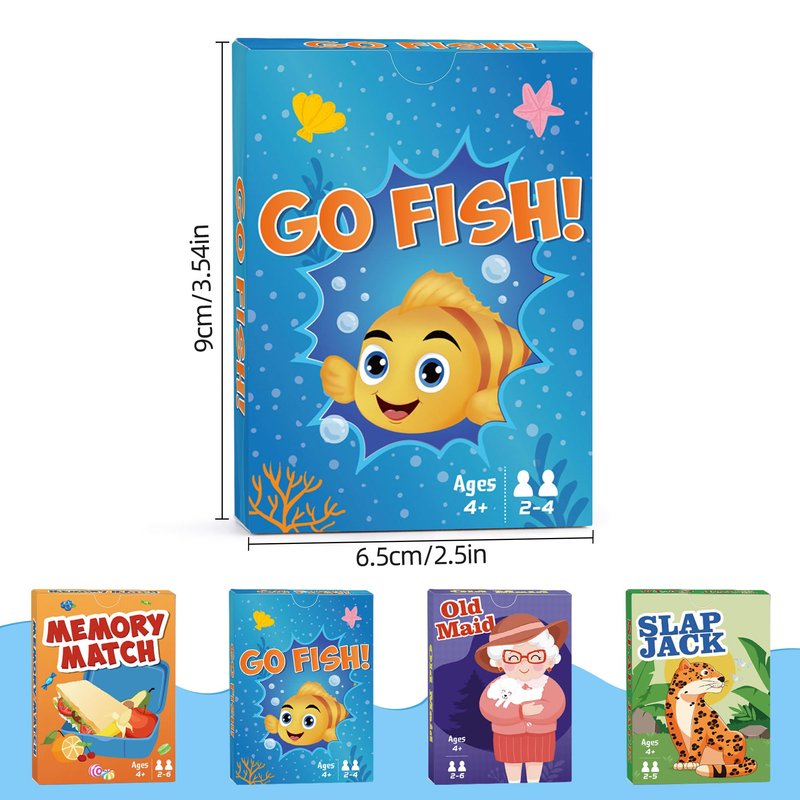 - Kids Card Games:Each set contains classic card game favorites like Go Fish, Old Maid, Memory Match, Slap Jack.They correspond to four different themes, namely ocean, profession, food, and animals.Easy to learn card games for kids teens and adults