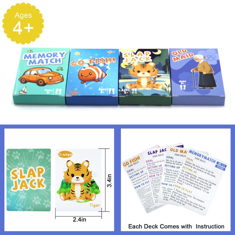 - Classic Kids Card Games: Dive into fun with our set of classic card games, featuring Go Fish, Old Maid, Memory Match, and Slap Jack! Each set offers four exciting themes: ocean, professions, Transportation, and animals. Perfect for kids, teens, and adults, these easy-to-learn games bring families together for hours of entertainment