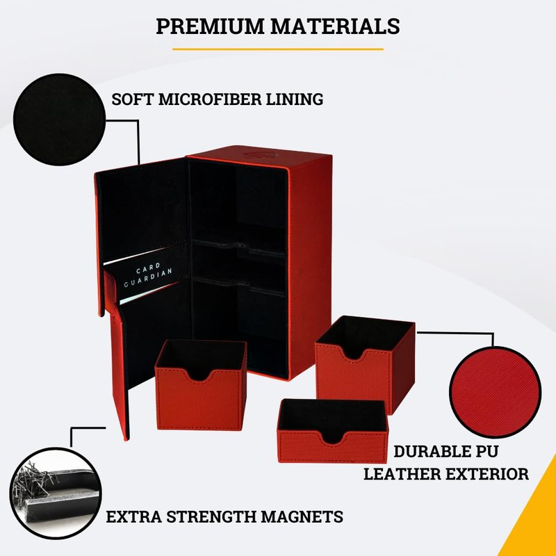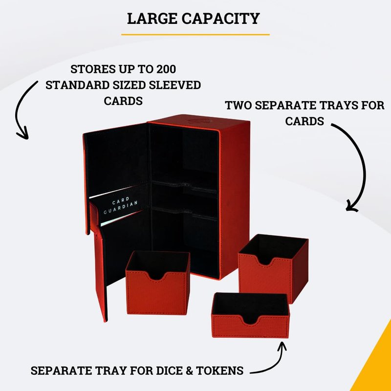 Card Guardian - Premium Double Deck Box (Red) for 200+ cards Trading Card Games TCG Perfect for Magic the gathering (MTG), Commander Deck, Yugioh Deck Box, Sports Card Storage Boxes