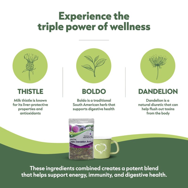 Cardo Mariano, Milk Thistle, Dandelion Root, Boldo Tea, Quiere Te 100% Natural, Blend Herbal Tea for Liver Detox Support, Cleanse and Digest, Non-GMO, Sugar Free, Caffeine-Free, Up to 100 Cups, 1 Bag