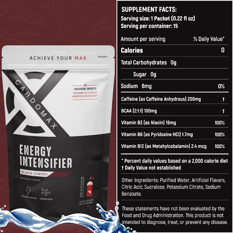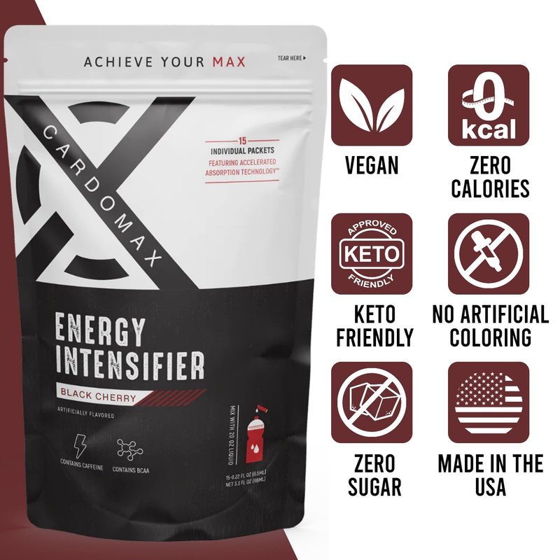 CardoMax Energy Intensifier Liquid Energy Boosting Water Flavoring with 200mg Caffeine, BCAA, 100% Vitamins B12, B6, and B3, Keto-Friendly, Vegan, Sugar-Free, No Calories - Black Cherry Flavor