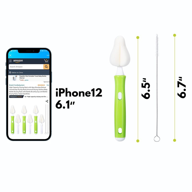 1. 【Perfect Baby Bottle Brushes Set - 3 Nipple Brushes with 3 interchangeable brushes head, 2 Long Straw Brushes】 2. 【Perfect Size - 6.5" sponge nipple brush, fit perfectly for cleaning baby bottle nipple and breast pump small parts. 6.7" straw brush, great for cleaning bottle straw, sippy cup straw etc.】 3. 【Baby Bottle Cleaning - fit perfectly for wide neck baby bottles cleaning and bottle height is less than 6 inches. And also fit perfectly for narrow neck baby bottles cleaning and bottle height is less than 5 inches.】 4.【 BPA Free - Sponge material, more contact area, remove 99.99% of residue and no odor, soft sponge brushes, non shedding.】 5. 360° Deep Clean - Perfect Brush Cleaning Set, easy to clean every part of bottles, with interchange brush head, make them more durable.