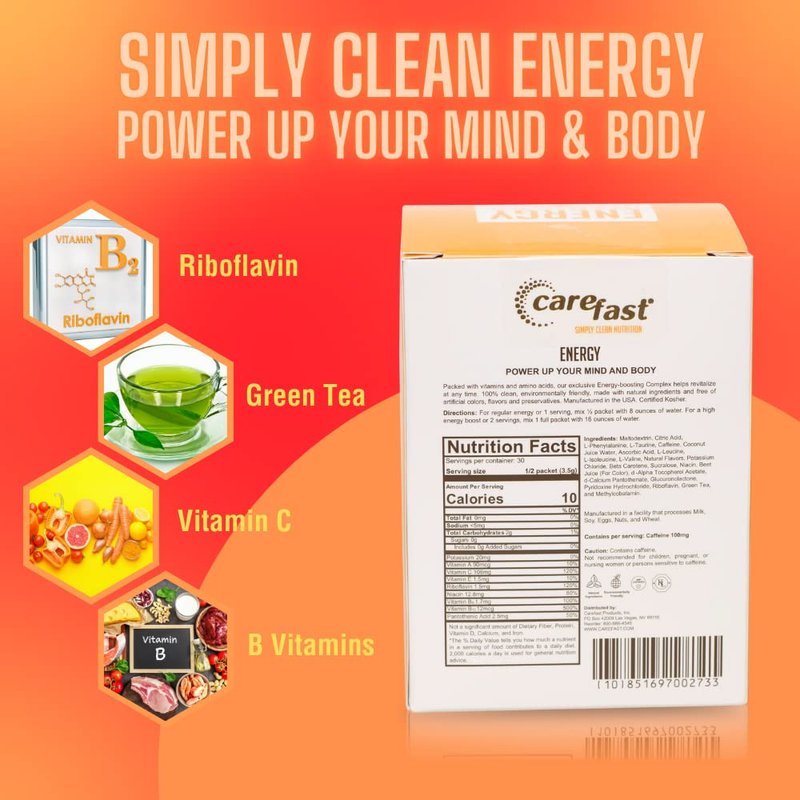 - HEALTHY ALTERNATIVE: The CareFast Drink Mix Packets energy boosting complex is a clean supplement that gives you a boost of energy without the crash of regular energy drinks. Instead of using unhealthy stimulants, our blend focuses on providing power at the cellular level by using essential nutrients our bodies need.
