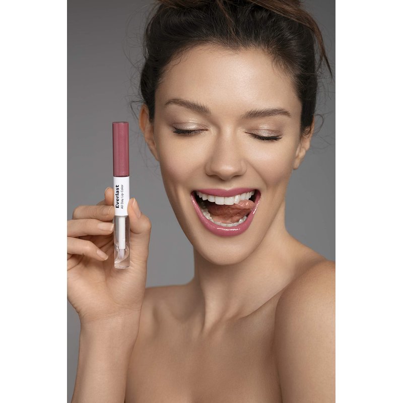 - everlast 2-step liquid lip color makeup, with our proprietary dual-sided applicator - one for color and the second for glossy cover