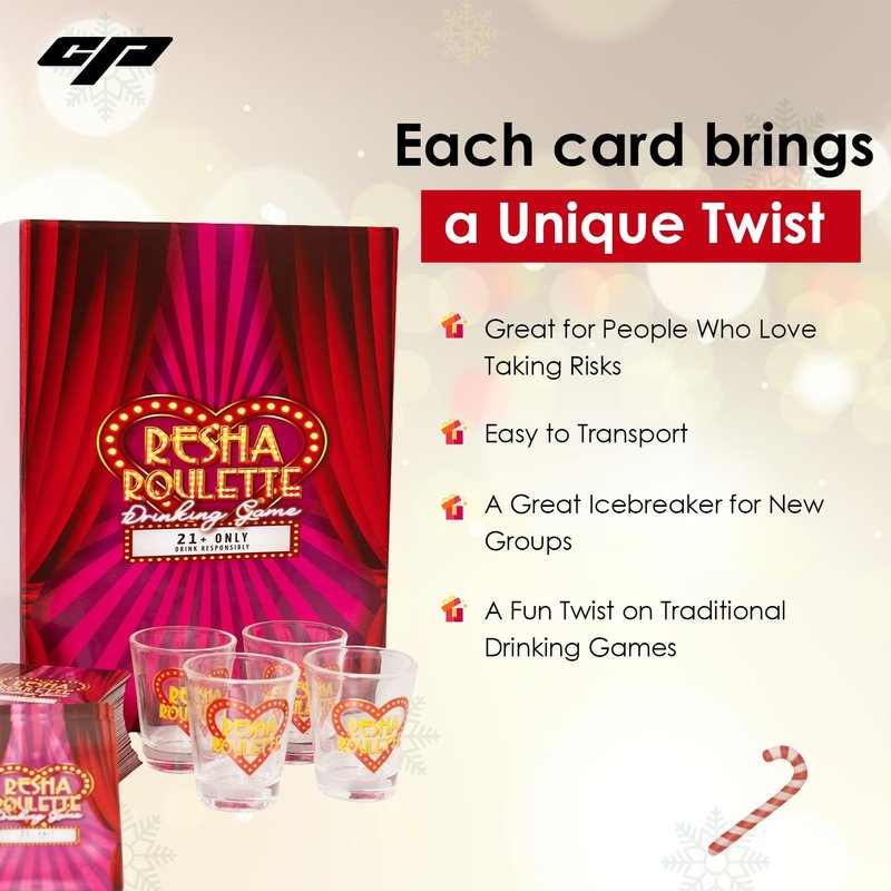 Caresha Please Resha Roulette Card, A Drinking Card Game for Parties and More, Includes 120 Cards and 4 Shot Glasses, Adult Drinking Game, Roulette Shot Drunk Lovers Card Game