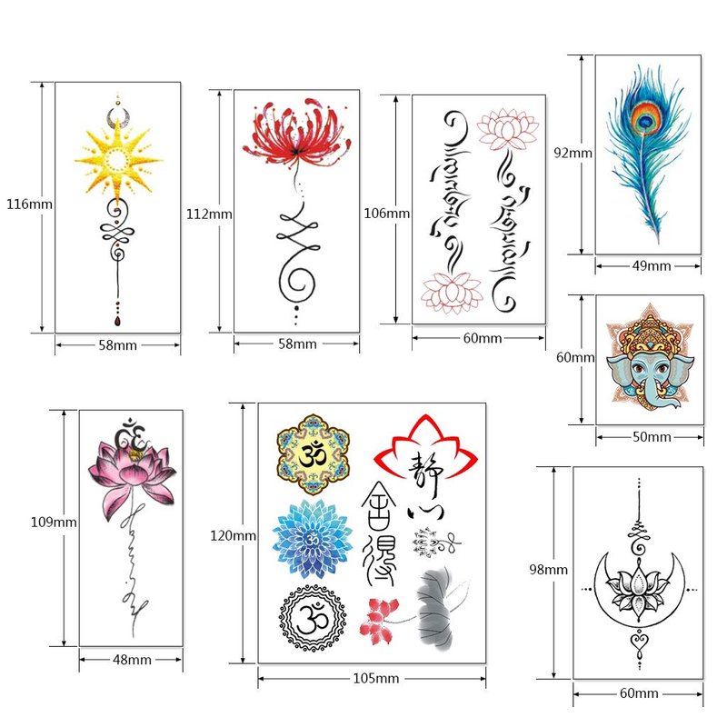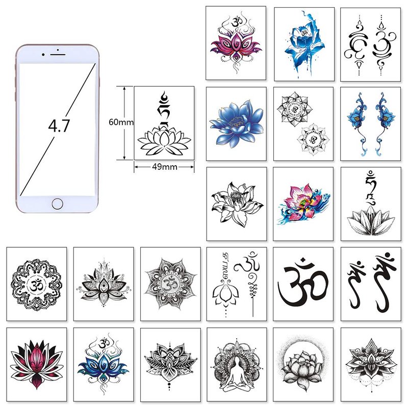 - 【Package】 30 sheets of Different Size Lotus Temporary Tattoo. See product description for dimensions.