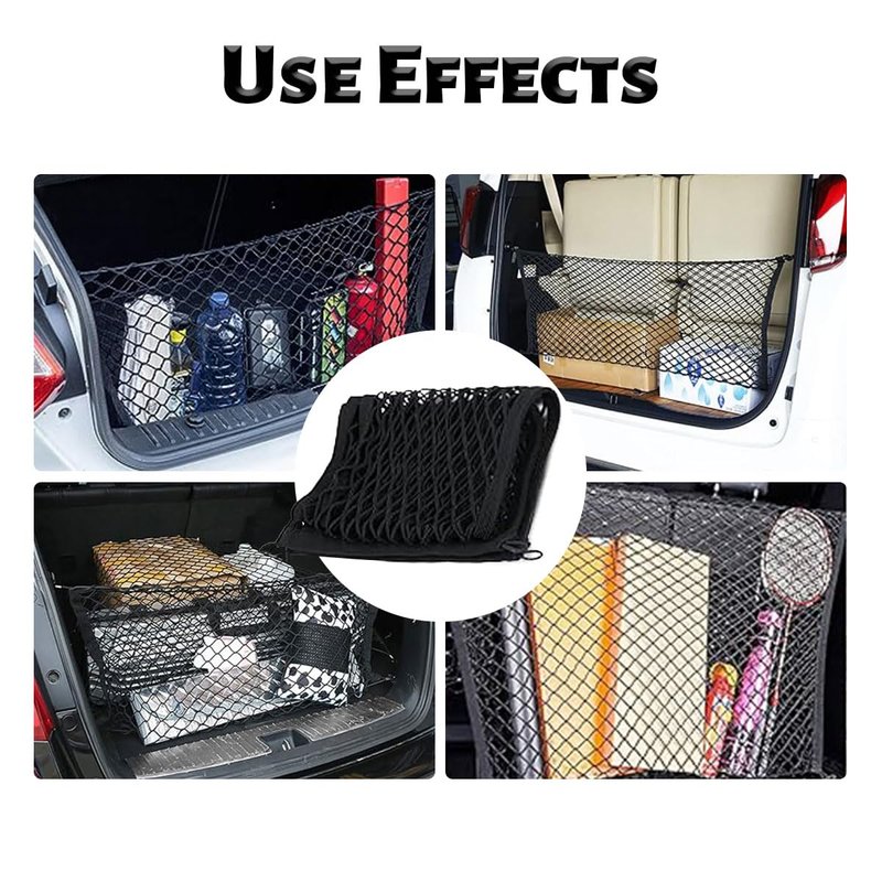 - 【Other Advantages】:The rear cargo net of the car is fully elastic with four edges and has high-strength stretchability. Effectively overcome the general non-elastic mesh bag after using the mesh sagging, small storage capacity, poor fixed items, and other shortcomings.