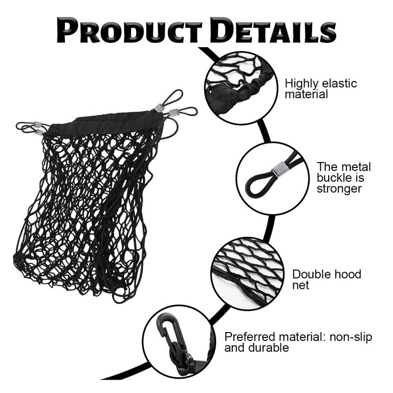 -The elastic cargo net is easy to install and remove. Hook it to your vehicle's hooks or tie-down points. It is difficult to break, no matter how the climate changes, stable performance, and long service life.