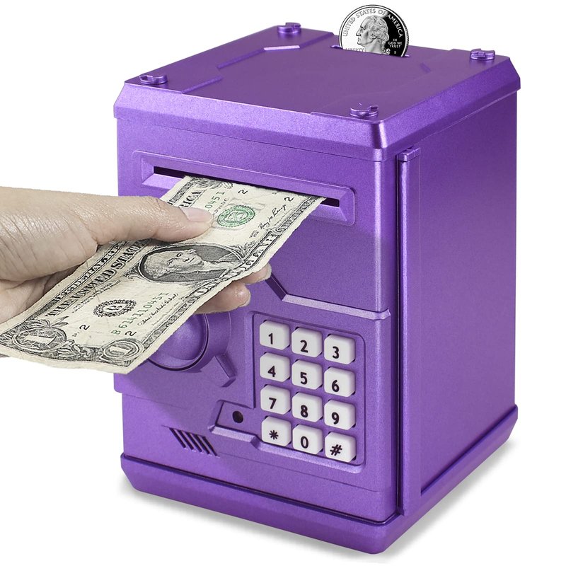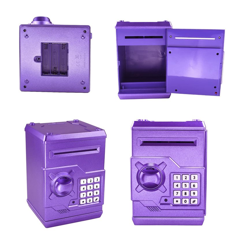 Cargooy Mini ATM Piggy Bank ATM Machine Best Gift for Kids,Electronic Code Piggy Bank Money Counter Safe Box Coin Bank for Boys Girls Password Lock Case (Purple)