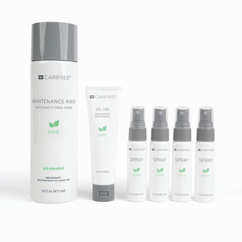 - [WIN THE BATTLE]: Do you ever wonder why some of us continue to get cavities despite meticulous oral hygiene, whereas others who rarely brush and floss do not? The risk of cavities varies from person to person and is based on dietary habits, hygiene (brushing and flossing), saliva flow, as well as other factors. This CariFree kit contains a 1-month supply of our CariFree Gel 1100 and CaiFree Maintenance Rinse.