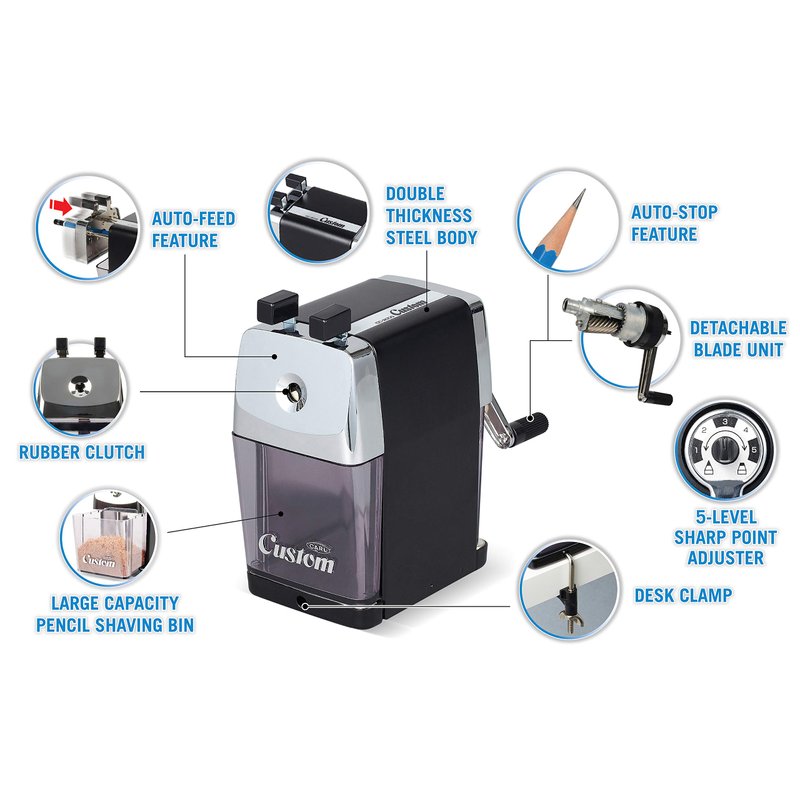 CARL Pencil Sharpener, CC-2000, Black, 5-Point Selector. Manual, Quiet for Office and Home Desks, School Classroom, CUI19018