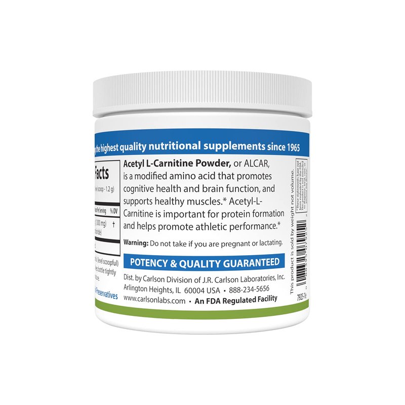 Carlson - Acetyl L-Carnitine Powder, Free-Form Amino Acid, Cognitive Health, Brain Function & Muscle Support, 3.53 oz (100 g)