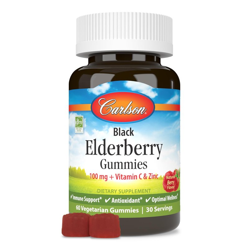 Carlson - Black Elderberry Gummies, with Vitamin C & Zinc, Immune Support, 60 Gummies
