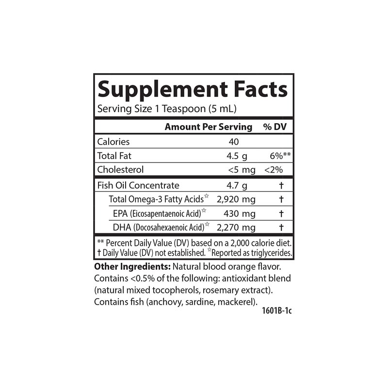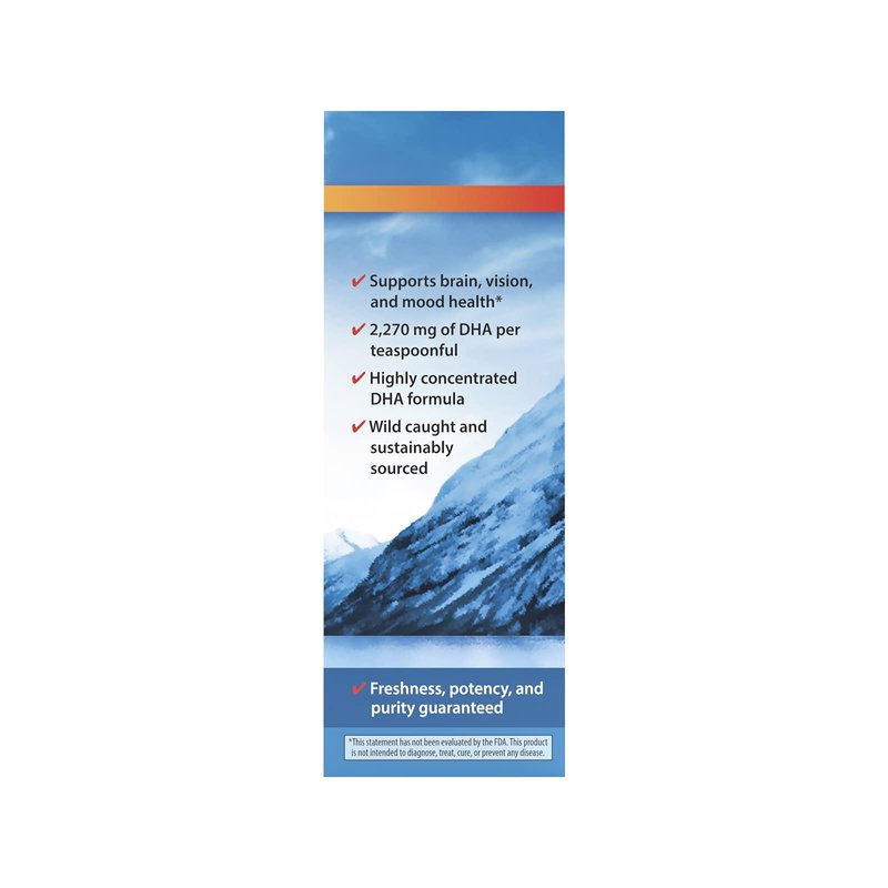 - 2,270 mg of DHA per teaspoon | Delicious natural orange flavor