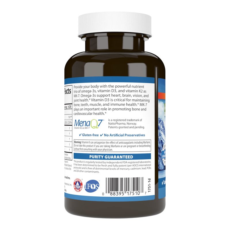 Get the benefits of the most important omega-3s EPA and DHA, plus vitamins D3 and K2 as MK-7 in a single supplement. Just one Elite Omega-3 + D3 & K2 soft gel provides 700 mg of omega-3s; 2,000 IU (50 mcg) of vitamin D3; and 90 mcg of MK-7. There are more than 40,000 published studies on omega-3s, making them some of the most studied nutrients in the world. The most beneficial omega-3s EPA and DHA promote whole body health. Vitamin D3 is an important nutrient linked to many health benefits, including bone, teeth, muscle, and overall health. What makes it so unique is that it's a vitamin we can get through food and a hormone our body makes from the sun. Despite the multiple ways of getting vitamin D3, many are still deficient due to changing seasons, age, and sun protection. Vitamin K2 as MK-7 is an essential nutrient our body can't make, which is why a supplement may be the best option. MK-7 plays an important role in binding calcium to the bone matrix.