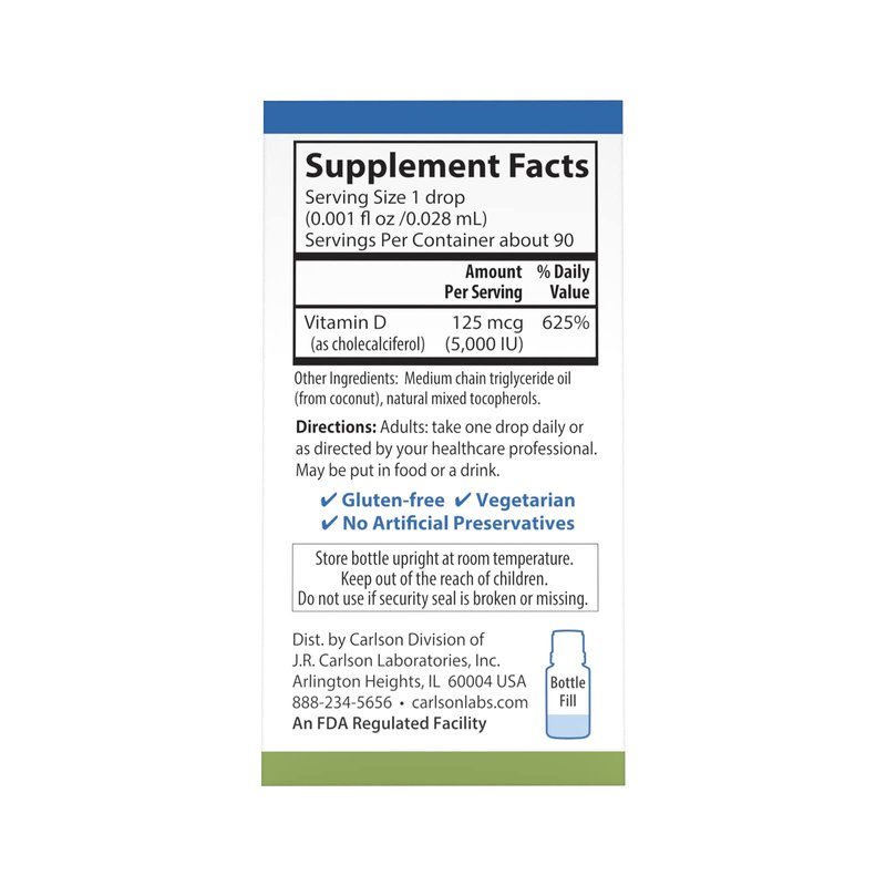 Carlson - Super Daily D3 4,000 IU (100 mcg) per Drop, Vitamin D Drop, Liquid Vitamin D3, 1-Year Supply, Unflavored, 365 Drops (10.3 mL)