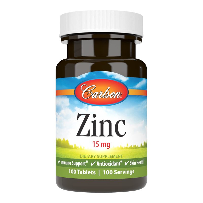 Carlson - Zinc, 15 mg, Zinc Supplement, Zinc Gluconate, Immune Support & Skin Health, Zinc Tablets, Antioxidant, Zinc Capsules, 100 Tablets