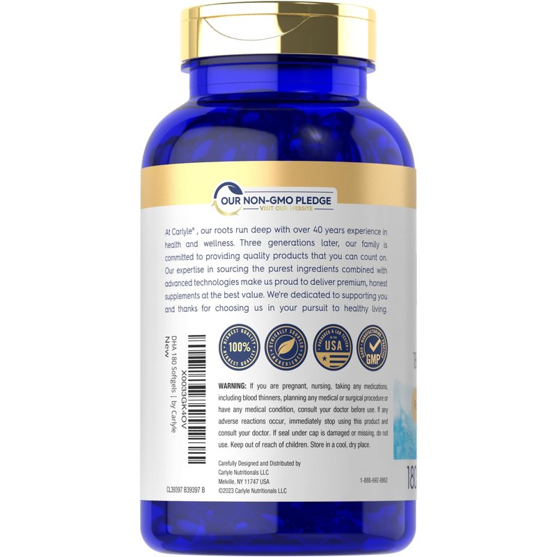 Our expertise in sourcing the purest ingredients combined with advanced technologies makes us proud to deliver premium, honest supplements at the best value. Carlyle Enteric Coated DHA is a testament to our commitment to excellence, made with powerful ingredients rooted in wellness. Thanks for choosing us in your pursuit of living healthy!