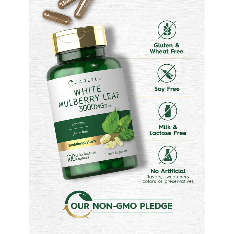 Carlyle Mulberry Leaf Extract | 3000mg | 100 Capsules | Non-GMO and Gluten Free Herbal Supplement