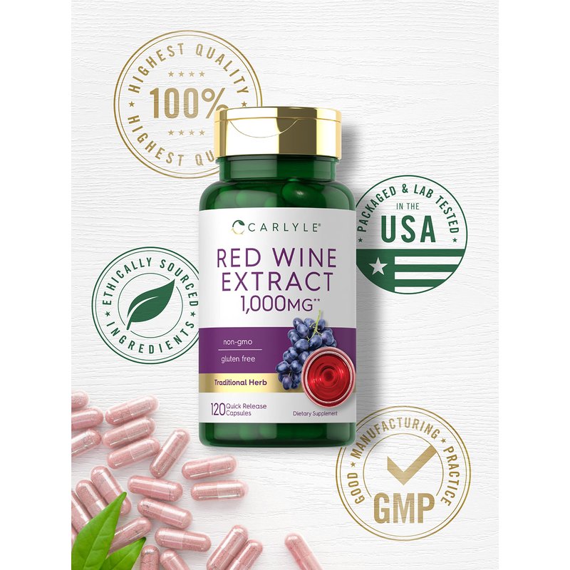 Carlyle Red Wine Extract Capsules | 1000mg | 120 Count | Non-GMO and Gluten Free Supplement