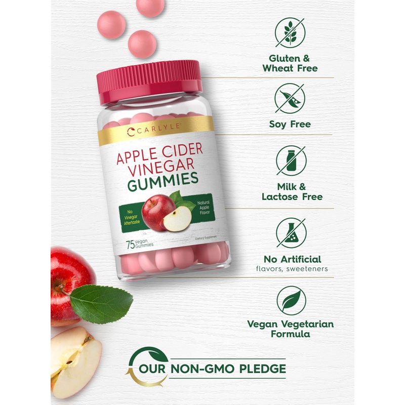 Carlyle Vegan Apple Cider Vinegar Gummies | 75 Count | Apple Flavor | Non-GMO, Gluten Free | ACV Supplement