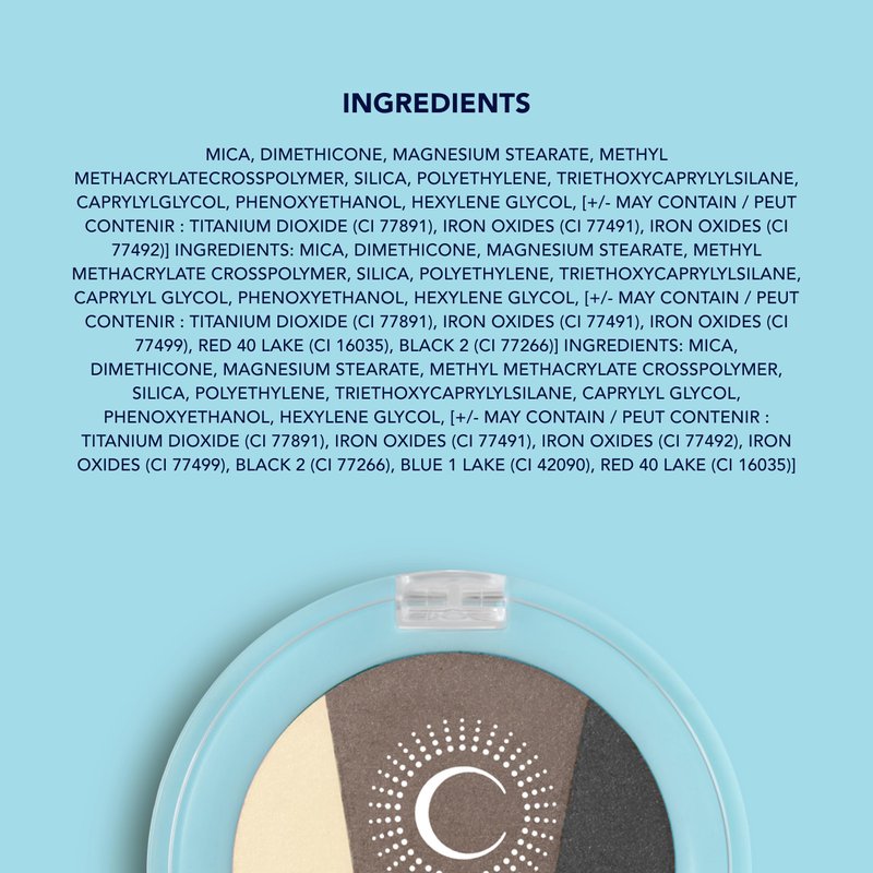 - Three shades of watercolor sheer eyeshadows to play up your eyes; a highlight shade, a mid-tone hue and a contouring color allows you to create any mesmerizing look you love