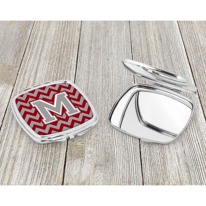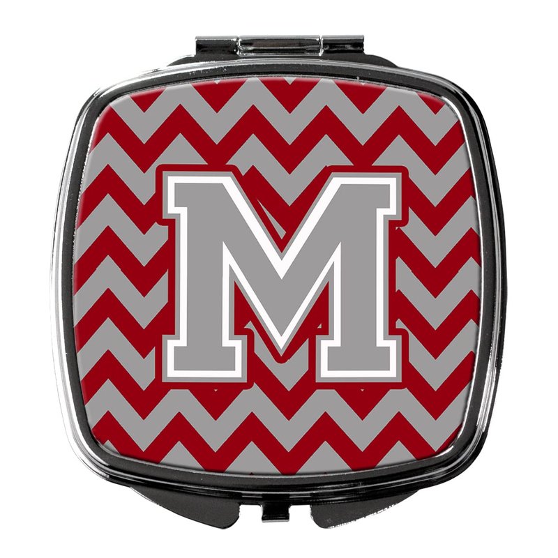 Caroline's Treasures CJ1043-MSCM Letter M Chevron Crimson and Grey Compact Mirror Decorative Travel Makeup Mirror for Women Girls Gifts Pocket Makeup Mirror Folding Handheld