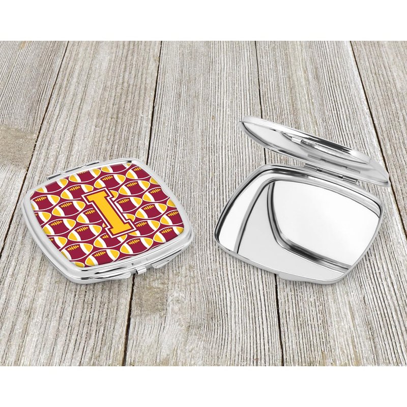 Caroline's Treasures CJ1081-ISCM Letter I Football Maroon and Gold Compact Mirror Decorative Travel Makeup Mirror for Women Girls Gifts Pocket Makeup Mirror Folding Handheld