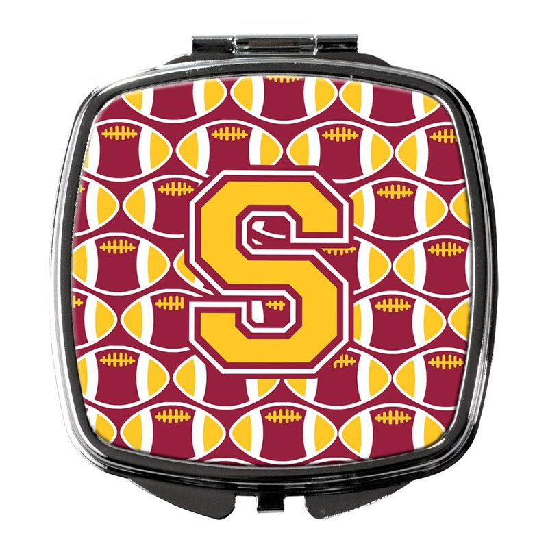 Caroline's Treasures CJ1081-SSCM Letter S Football Maroon and Gold Compact Mirror Decorative Travel Makeup Mirror for Women Girls Gifts Pocket Makeup Mirror Folding Handheld