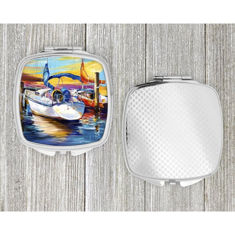 Caroline's Treasures JMK1243SCM Symmetry again Sailboats Compact Mirror Decorative Travel Makeup Mirror for Women Girls Gifts Pocket Makeup Mirror Folding Handheld