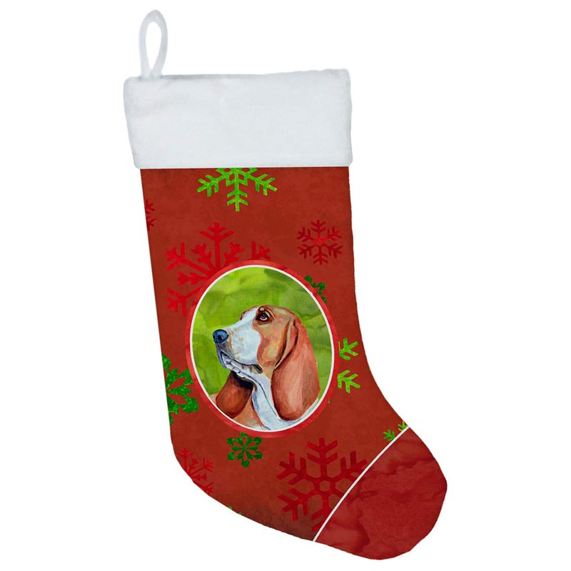 Caroline's Treasures LH9332-CS Basset Hound Red and Green Snowflakes Holiday Christmas Christmas Stocking Fireplace Hanging Stockings Christmas Season Party Decor Family Holiday Decorations