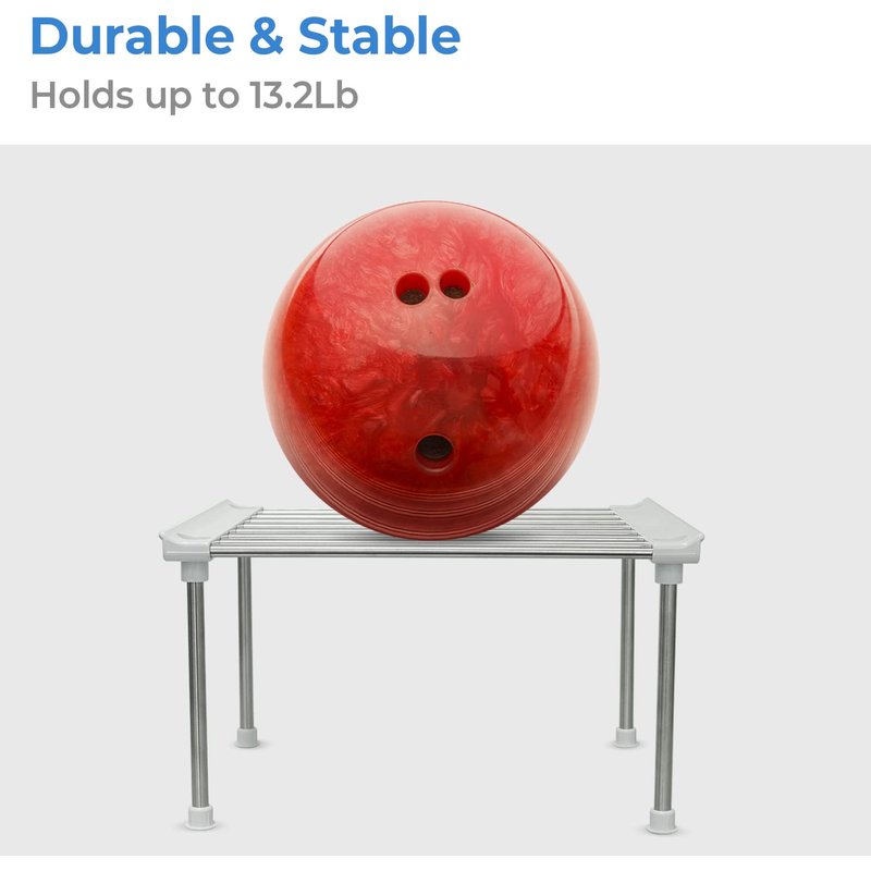 · In the Kitchen: Put them in the cabinet or on the counter to create more levels and more stacking options for boxed grains, spice bottles, glasses, bowls and more. You can never have too many storage shelves in the kitchen, right?· In the Living Room: Create a neat coffee area with these shelves - coffee mugs under and teapot above. Your coffee gear will all find a place here.· In the Office: Stack the racks together on your desk to extend your space up. Organize your cup, stapler, clips and other everyday office supplies on different levels to restore a tidy desktop.Shipping Summary: