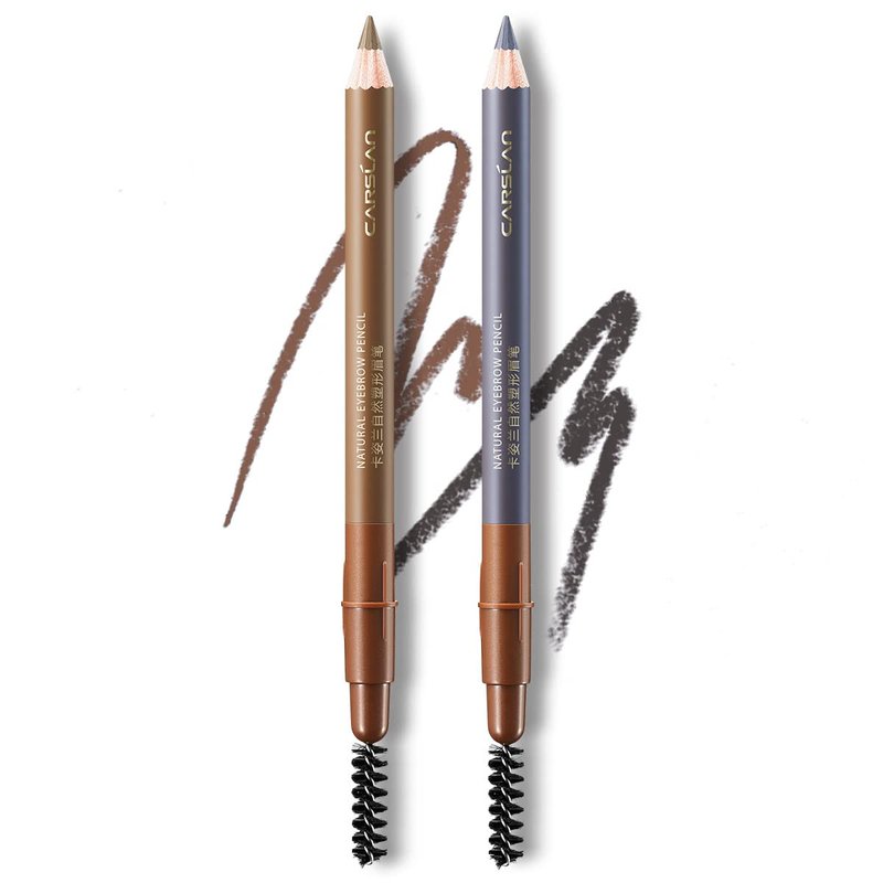 CARSLAN Natural Shaping Eyebrow Pencil, Definer Eyebrow Color, Waterproof, Longlasting, Blending Brush,01 Light Brown & 03 Light Gray (2PCS)