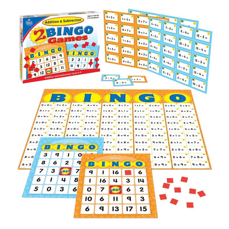 - Learning Made Fun: Carson Dellosa's Addition and Subtraction Bingo Board Games turn math review into fun educational games for 3 to 36 players. The addition and subtraction bingo game helps kids build math fluency and gain confidence in their skills.