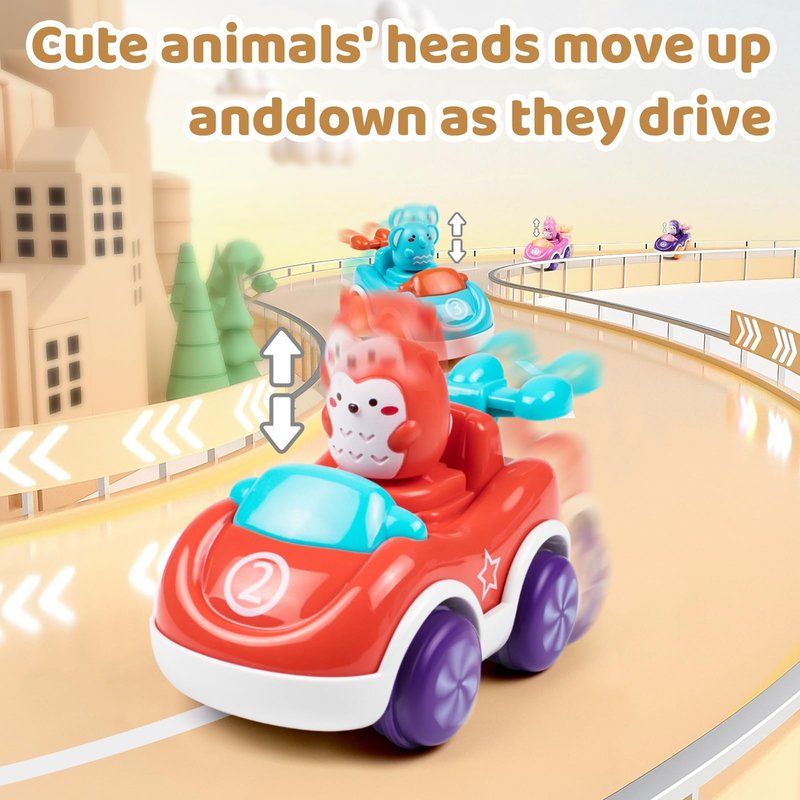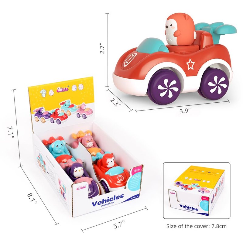 - 【Eye Catching Colors】 This 1-2-3 year old friction-powered cartoon animal car with bright colors and perfect printing design makes the car body an artistic feeling, which can easily attract baby's attention, improve color recognition and aesthetic ability.