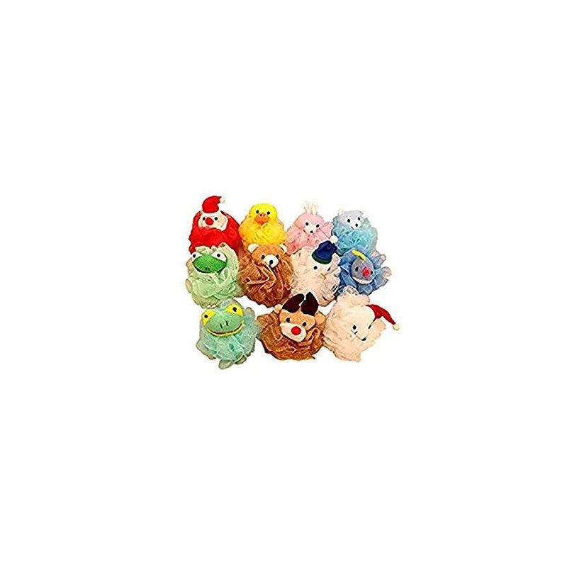 Cartoon Bath Pouf Puff Mesh Bath Sponges with Stuffed Animal Loofah (4 Pack) Rabbit,Bear,Duck,Frog Design