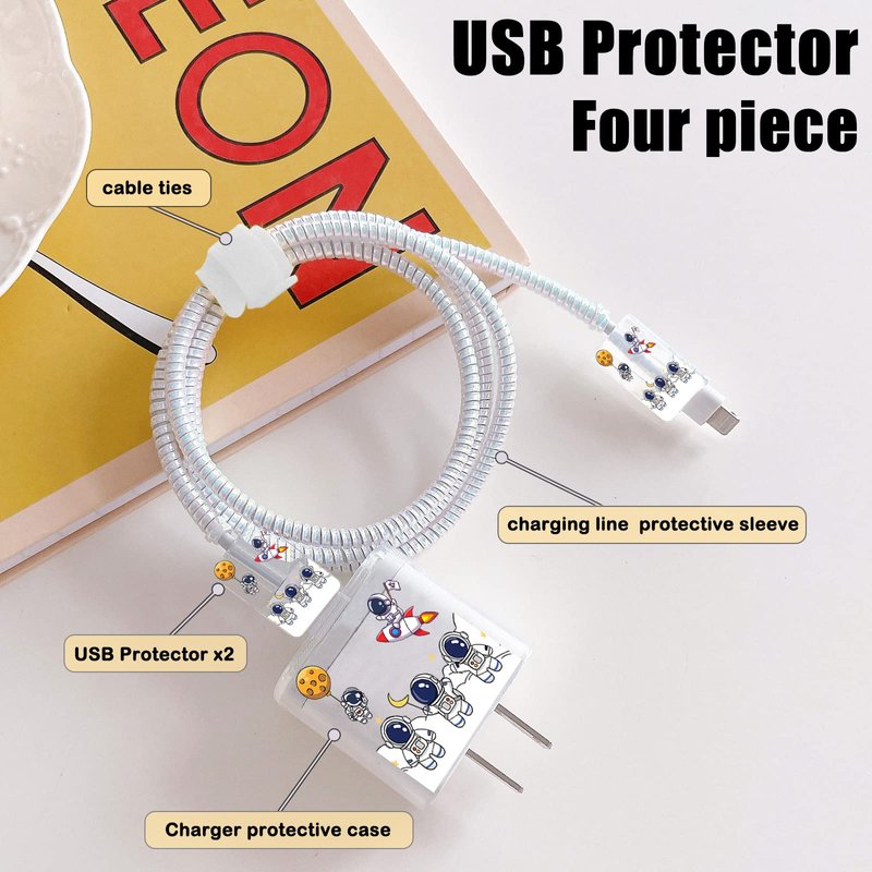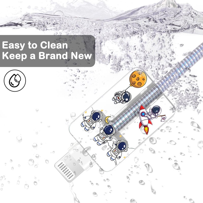 Cartoon Cable Protector for Apple 18W/20W USB-C Power Adapter Charger, Cute Astronauts Pattern, Clear Silicone Data Lightning Cable USB Wire Saver Charger Protective Case Fit for iPhone Charger