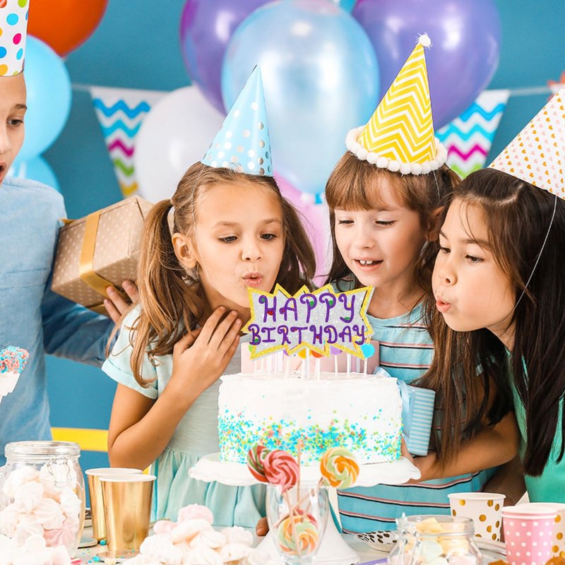 - This Birthday Cake Topper using premium glittery paper cardboard and food grade Glue stick, is pre-assembled and, the glitter will not fall off, We have sturdy package in order to prevent from cake topper was broken during shipping.