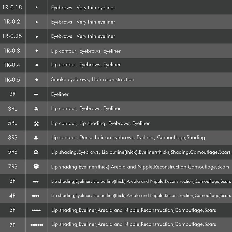 5RL--0.25mm: Fits for Lip contour, lip shading, eyebrows and eyeliner.