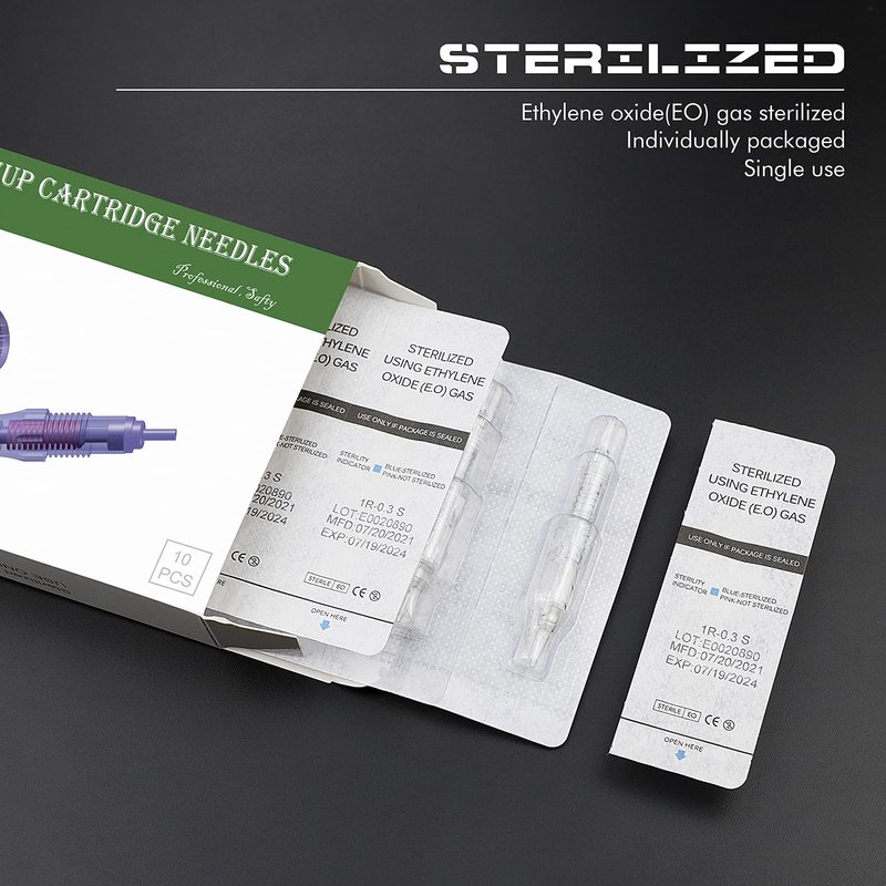 - 【Material】316 medical stainless steel with pre-sterile by E.O. Gas, transparent plastic shell. This cartridge needles can be used to eyebrow, eyeliner, lip contour.