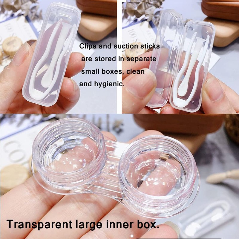 Material: Outer box: plastic Inner box: leather lining Product Dimensions:9.5 x 5.5 x 3 inches; 2.88 Ounces Product List:Out box × 1pc Inner box ×1set Clips and suction sticks ×1set Mirror ×1pc Instructions for use: 1. Please rinse the inner box with clean water before and after use, and do not boil it with hot water. 2. After the inner box is filled with a layer of preservation solution, install the pure lens (note that the lens is placed in the box, and do not place the edge of the inner box). 3. The care solution cannot be washed with detergent or soap. This product is compatible with all brands of care solutions.