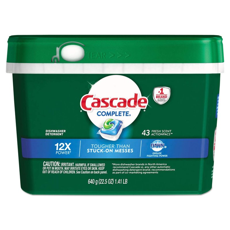• Cascade Complete ActionPacs dishwasher detergent is tougher than stuck on messes