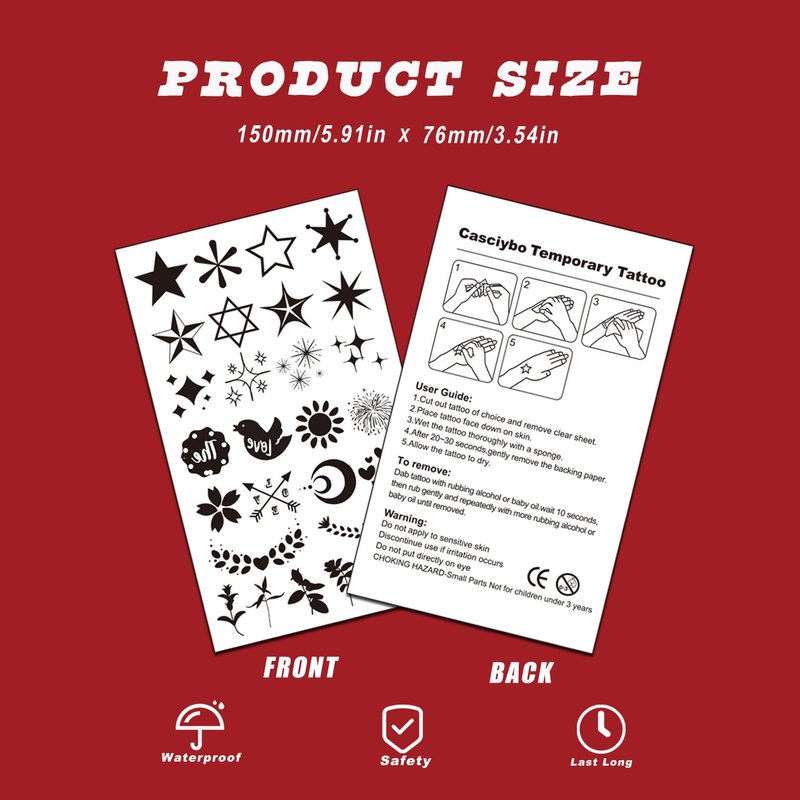 • WATERPROOF AND LAST LONG--the fake tattoo with the latest waterproof technology and eco-friendly inks, the temporary tattoo is not irritating to the skin, is safe for children's skin. can be used at pool parties and in all kinds of environments where water is present.