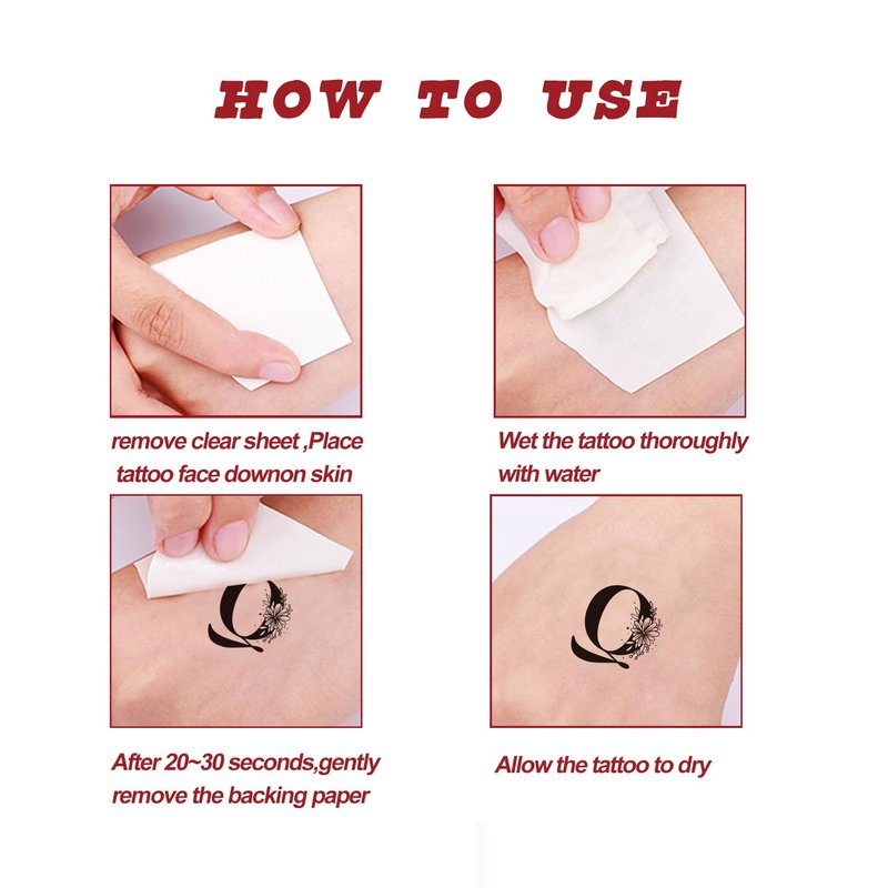 • EASY TO APPLY AND REMOVE-- Our black temporary tattoos is easy to use,Clean and dry the skin before application, cut out the desired pattern, remove the clear protective sheet, place the pattern face down on the desired area, dampen the paper with a damp towel or sponge, wait 20 seconds and remove the backing paper and you are done. Easily removed with alcohol, baby oil, olive oil, soap and make-up remover.