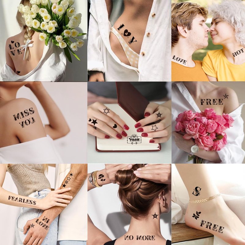 • ALPHABET TEMPORARY TATTOOS --the fake small letters temporary tattoos stickers has 12 sheets patterns. you can used these black tattoos for arms, face,shoulders, back,chest,legs,neck and worn any where on your body show your personality