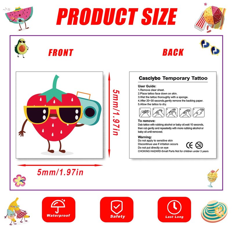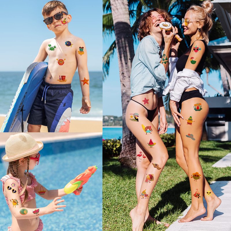 The summer Temporary Tattoos are perfect for kids women birthday party supplies, party favors, goodie bags stuffers,family party, school event, Are you looking for the perfect kids party favors? Our temporary tattoos is your good choice, which will add the fun of parties.