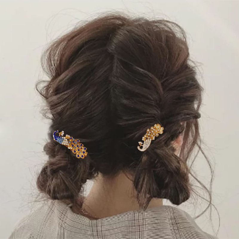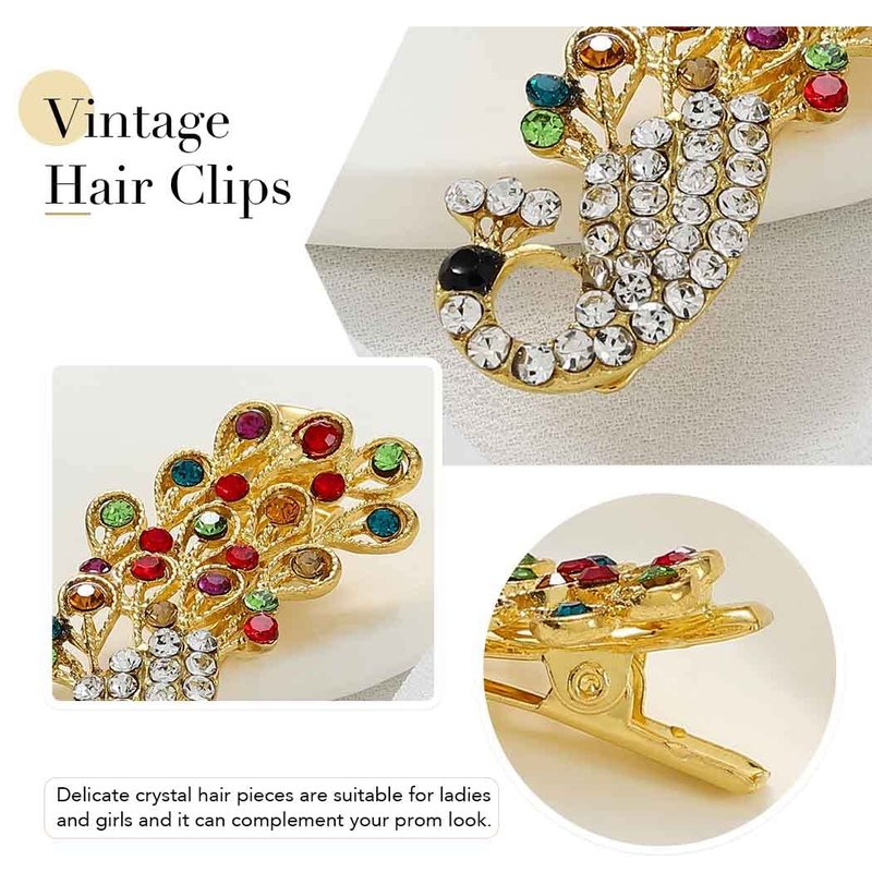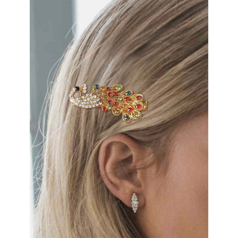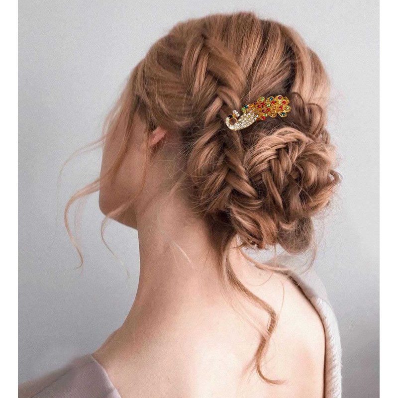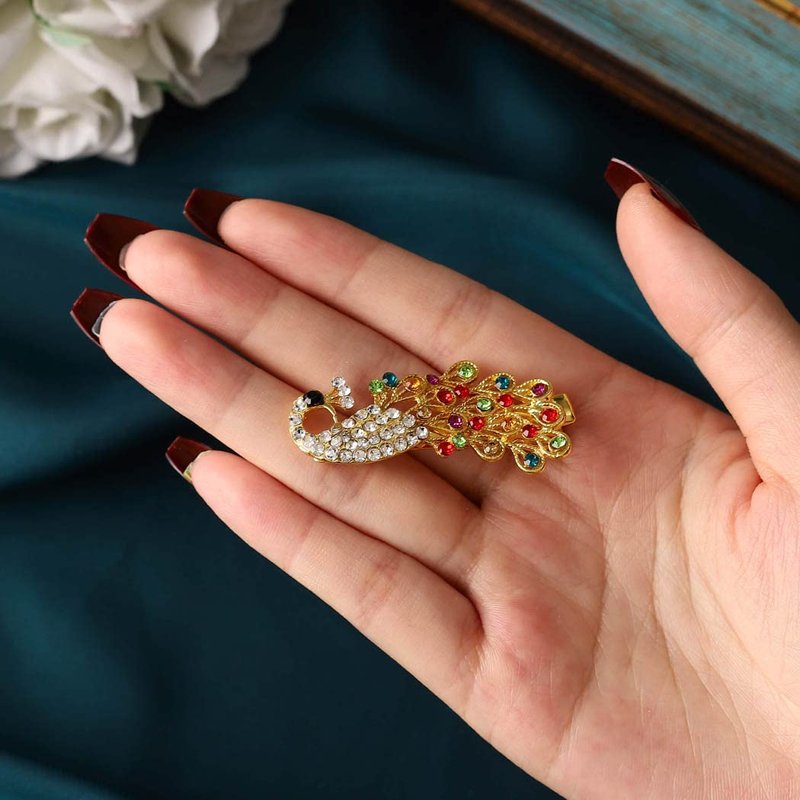 Casdre Crystal Hair Clip Gold Bridal Hair Piece Party Prom Peacock Hair Accessories for Women and Girls(Pack of 1) (E Colorful)
