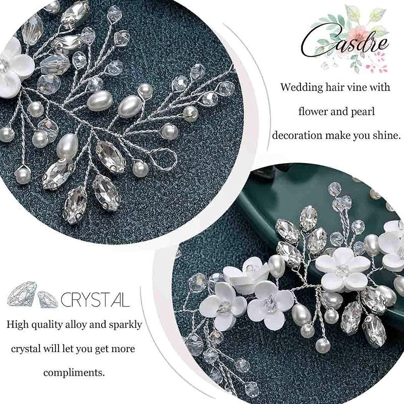 Casdre Flower Bride Wedding Headpiece Silver Crystal Bridal Headband Pearl Hair Accessories for Women and Girls