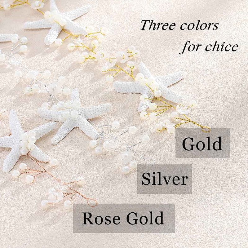 • Starfish headpiece have three colors for choice,elegant looking will match your wedding dress perfectly.