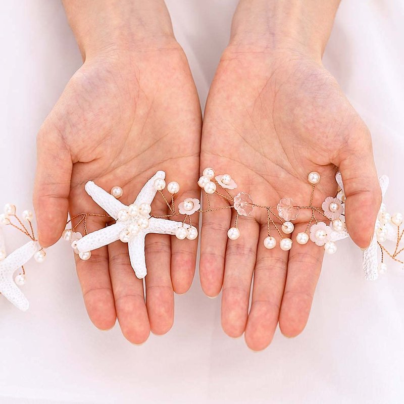- Starfish wedding hair accessories are made of alloy and pearl ,the wire is pretty well made and is a great addition for your hairstyle.